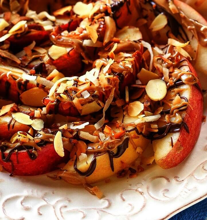 - Pour finir, garnissez les pommes de la noix de coco râpée et des amandes râpées
